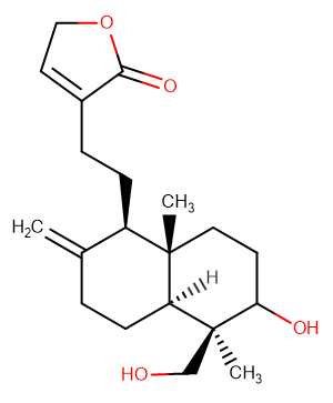 Brief Description14-Deoxyandrographolide is a bioactive compound of Andrographis paniculata with hepatoprotective efficacy. It desensitizes hepatocytes to TNF-α-mediated apoptosis through the release of TNFRSF1A release.