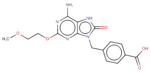 SMILESCOCCOc1nc(N)c2[nH]c(=O)n(Cc3ccc(cc3)C(O)=O)c2n1