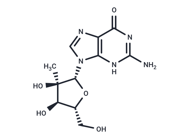 Description2'-C-Methylguanosine (2'-C-beta-Methylguanosine) is a guanosine analogue. Some guanosine analogs have immunostimulatory activity. In some animal models, they also induce type I interferons, producing antiviral effects. Studies have shown that the functional activity of guanosine analogs is dependent on the activation of Toll-like receptor 7 (TLR7).