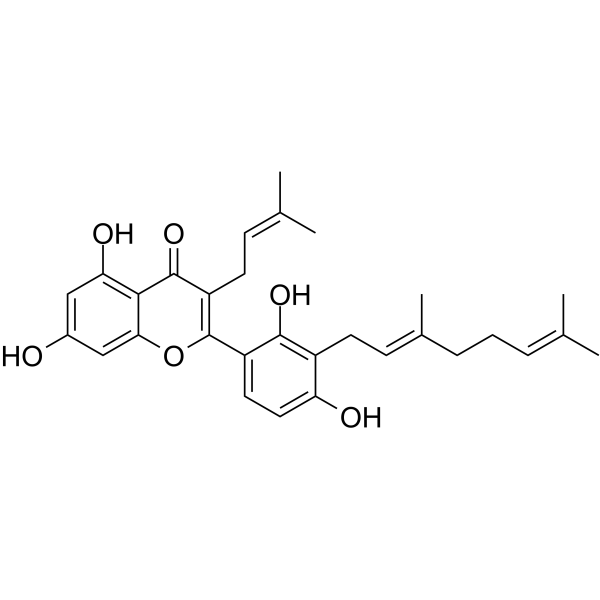 Brief Description3'-Geranyl-3-prenyl-2',4',5,7-tetrahydroxyflavone is a natural product from Morus alba.