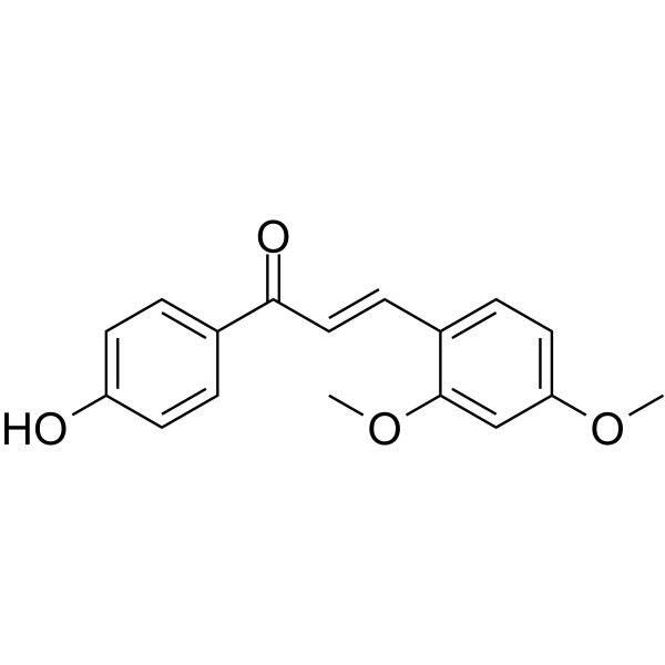 Brief Description4'-Hydroxy-2,4-dimethoxychalcone is a naturally occurring chalcone derivative from the herbal resin of the red geranium Dragon's Blood.4'-Hydroxy-2,4-dimethoxychalcone possesses a wide range of biological activities including anti-malarial, anti-bacterial, anti-fungal, and anti-protozoa activity.