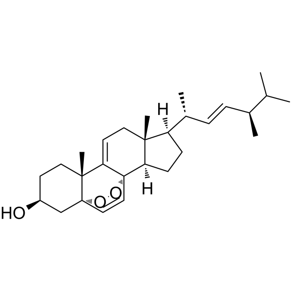 In Vitro5,8-Epidioxyergosta-6,9(11),22-trien-3-ol (9,11-Dehydroergosterol peroxide) is an effective inhibitor of HL60 leukemia cell growth and apoptosis-inducer.Apoptosis induced by 5,8-Epidioxyergosta-6,9(11),22-trien-3-ol from Ganoderma Lucidum mycelium in human malignant melanoma cells is Mcl?1 dependent.