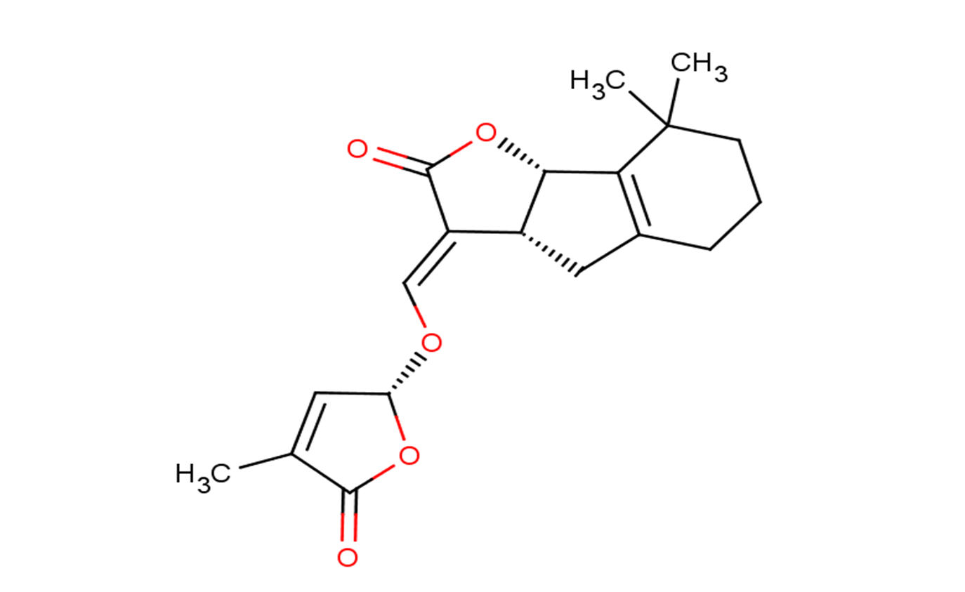 SMILESCC1=C[C@@H](OC1=O)O/C=C/2\[C@H]3CC4=C([C@H]3OC2=O)C(CCC4)(C)C