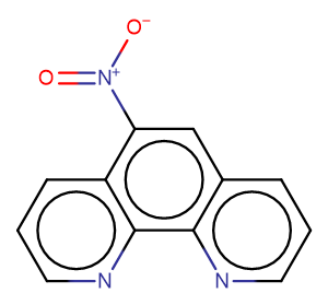 In Vitro5-Nitro-1,10-phenanthroline (25 μM; 24 h) kills naturally resistant intracellular bacteria by inducing autophagy in THP-1 macrophages. 5-Nitro-1,10-phenanthroline (1x, 5x, 20x or 50x MIC, MIC=0.78 μM; 1 h) also modulates the host machinery to kill intracellular pathogens by inhibiting mycolic acid biosynthesis of Mtb. Cell Viability Assay Cell Line:Mtb H37Rv, M. bovis BCG and M. bovis BCG-5NP resistant strain Concentration:0-12.5 μM Incubation Time:24 hours Result:Inhibited pathogens with MIC99 values of 0.78 μM (Mtb H37Rv), 0.78 μM (M. bovis BCG), and >12.5 μM (M. bovis BCG-5NP), respectively.
