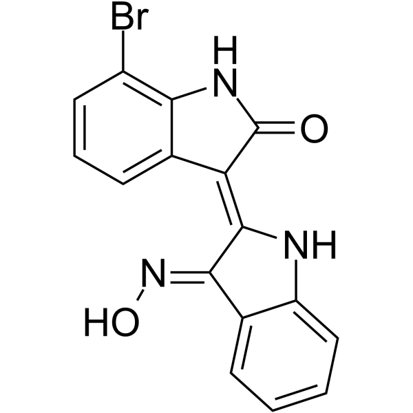 Brief Description7-bromoindirubin-3'-oxime (7BIO) is a caspase independent nonapoptotic cell death inducer. 7BIO is an inhibitor of FLT3, DYRK1A, DYRK2, Aurora B and Aurora C kinases.