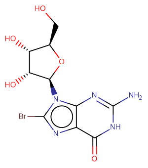 SMILESNC(NC1=O)=Nc(n2[C@@H]([C@@H]3O)O[C@H](CO)[C@H]3O)c1nc2Br