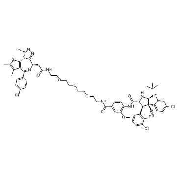 SMILESO=C([C@@H]1N[C@@H](CC(C)(C)C)[C@](C#N)(C2=CC=C(Cl)C=C2F)[C@H]1C3=CC=CC(Cl)=C3F)NC4=CC=C(C(NCCOCCOCCOCCNC(C[C@H]5C6=NN=C(C)N6C7=C(C(C)=C(C)S7)C(C8=CC=C(Cl)C=C8)=N5)=O)=O)C=C4OC