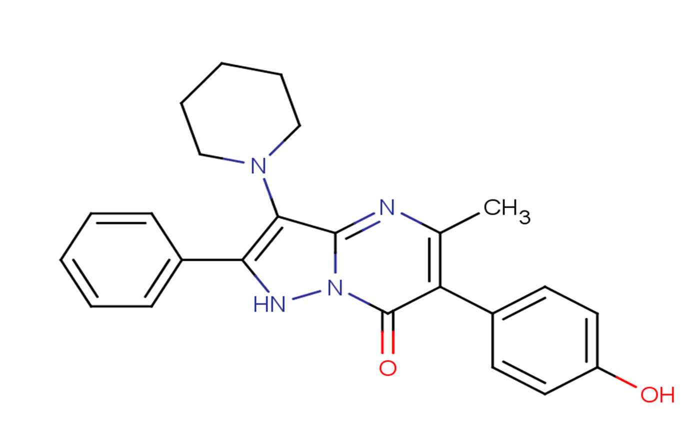 SMILESCC1=C(C(=O)N2C(=N1)C(=C(N2)C3=CC=CC=C3)N4CCCCC4)C5=CC=C(C=C5)O