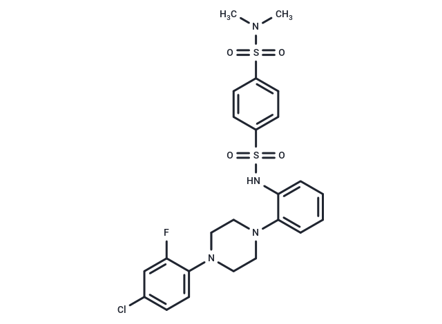 SMILESCN(C)S(=O)(=O)c1ccc(cc1)S(=O)(=O)Nc1ccccc1N1CCN(CC1)c1ccc(Cl)cc1F