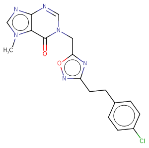 SMILESCn(cn1)c2c1N=CN(Cc1nc(CCc(cc3)ccc3Cl)no1)C2=O