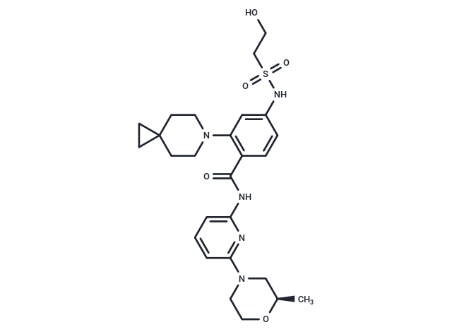 SMILESC(NC=1N=C(C=CC1)N2C[C@@H](C)OCC2)(=O)C3=C(N4CCC5(CC5)CC4)C=C(NS(CCO)(=O)=O)C=C3