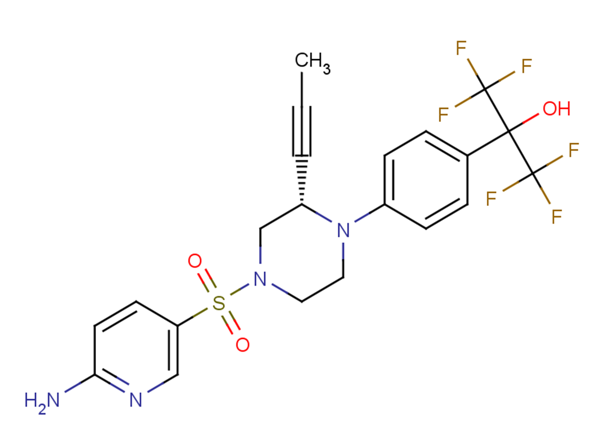 SMILESCC#C[C@@H]1N(C2=CC=C(C(C(F)(F)F)(O)C(F)(F)F)C=C2)CCN(S(=O)(C3=CN=C(N)C=C3)=O)C1