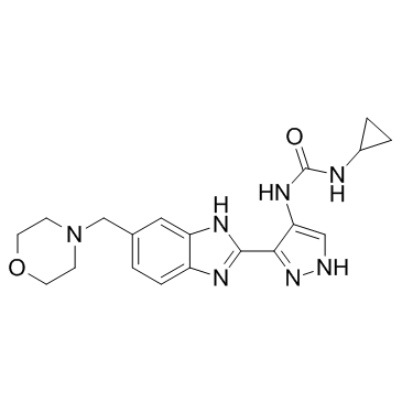 Chemical NameUrea, N-cyclopropyl-N'-[3-[6-(4-morpholinylmethyl)-1H-benzimidazol-2-yl]-1H-pyrazol-4-yl]-