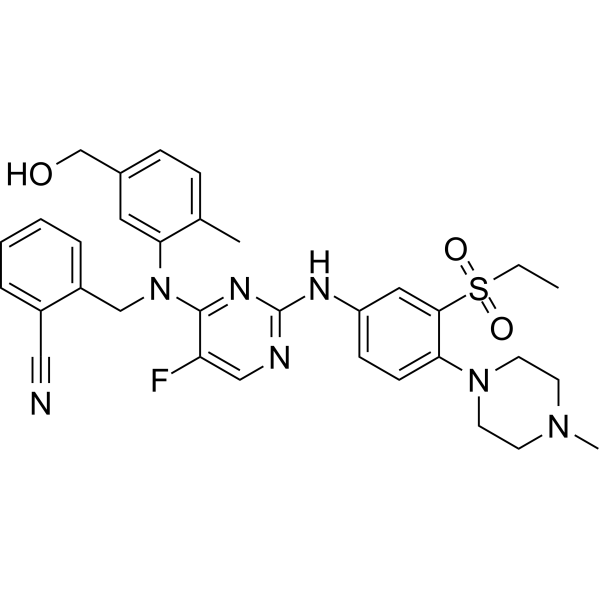 SMILESCCS(=O)(=O)c1cc(Nc2ncc(F)c(n2)N(Cc2ccccc2C#N)c2cc(CO)ccc2C)ccc1N1CCN(C)CC1