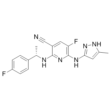 Chemical Name3-Pyridinecarbonitrile, 5-fluoro-2-[[(1S)-1-(4-fluorophenyl)ethyl]amino]-6-[(5-methyl-1H-pyrazol-3-yl)amino]-