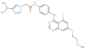 Chemical NameN-(4-{[5-Fluoro-7-(2-methoxyethoxy)quinazolin-4-yl]-amino}phenyl)-2-[4-(propan-2-yl)-1H-1,2,3-triazol-1-yl]-acetamide