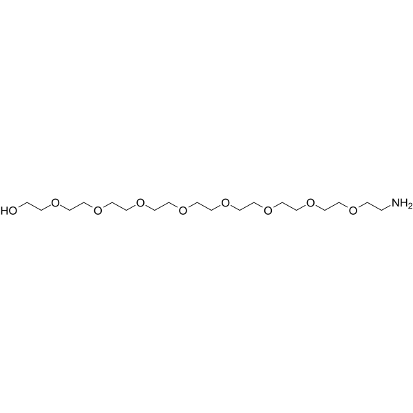 DescriptionAmino-PEG9-alcohol is a PEG-based PROTAC linker that can be used in the synthesis of PROTACs.(In Vitro):PROTACs contain two different ligands connected by a linker; one is a ligand for an E3 ubiquitin ligase and the other is for the target protein. PROTACs exploit the intracellular ubiquitin-proteasome system to selectively degrade target proteins.