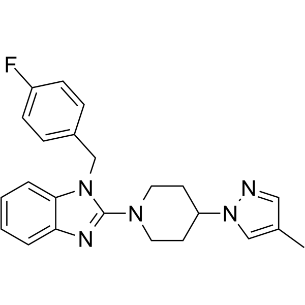 SMILESCc1cnn(c1)C1CCN(CC1)c1nc2ccccc2n1Cc1ccc(F)cc1