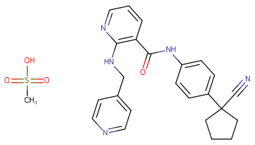 SMILESCS(O)(=O)=O.O=C(NC1=CC=C(C=C1)C1(CCCC1)C#N)C1=C(NCC2=CC=NC=C2)N=CC=C1