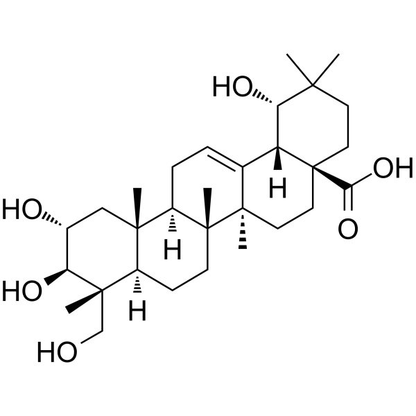 DescriptionArjungenin, a triterpene derived from Terminalia arjuna, exhibits insect feeding-deterrent and growth inhibitory properties.