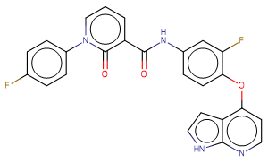 SMILESFc1ccc(cc1)-n1cccc(C(=O)Nc2ccc(Oc3ccnc4[nH]ccc34)c(F)c2)c1=O