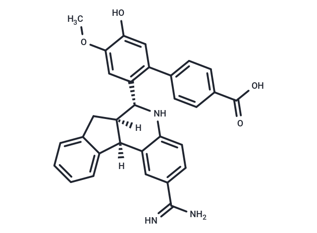 SMILESC(=N)(N)C=1C=C2[C@@]3([C@]([C@@H](NC2=CC1)C4=C(C=C(O)C(OC)=C4)C5=CC=C(C(O)=O)C=C5)(CC=6C3=CC=CC6)[H])[H]