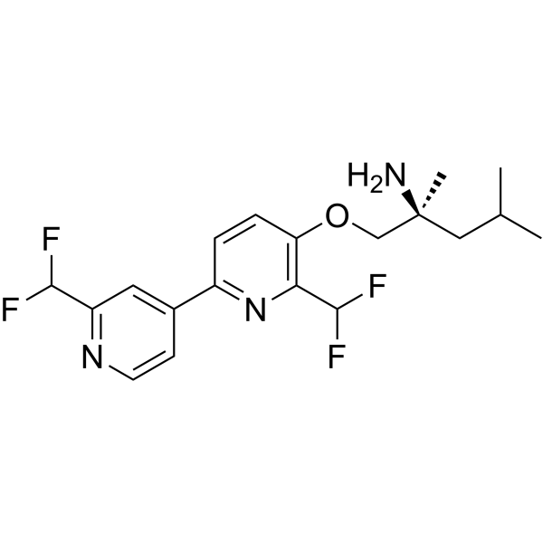 DescriptionAAK1-IN-1 is a highly selective and potent inhibitor of adaptor associated kinase 1 (AAK1, IC50 = 2 nM).(In Vitro):AAK1-IN-1can be used for neurodegenerative disease studies. Adaptor associated kinase 1 (AAK1) is a member of the Arkl/Prkl family of serine/threonine kinases and modulates clatherin coated endocytosis. and receptor-mediated endocytosis.