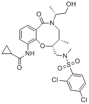 Chemical NameCyclopropanecarboxamide, N-[(2R,3S)-2-[[[(2,4-dichlorophenyl)sulfonyl]methylamino]methyl]-3,4,5,6-tetrahydro-5-[(1R)-2-hydroxy-1-methylethyl]-3-methyl-6-oxo-2H-1,5-benzoxazocin-10-yl]-