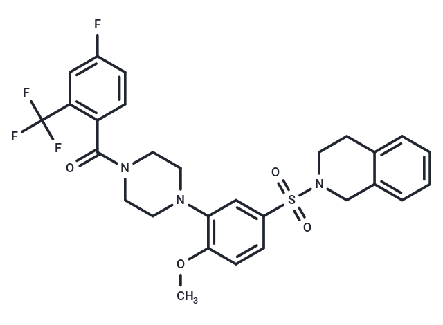 SMILESO(C)C1=C(C=C(S(=O)(=O)N2CC=3C(CC2)=CC=CC3)C=C1)N4CCN(C(=O)C5=C(C(F)(F)F)C=C(F)C=C5)CC4