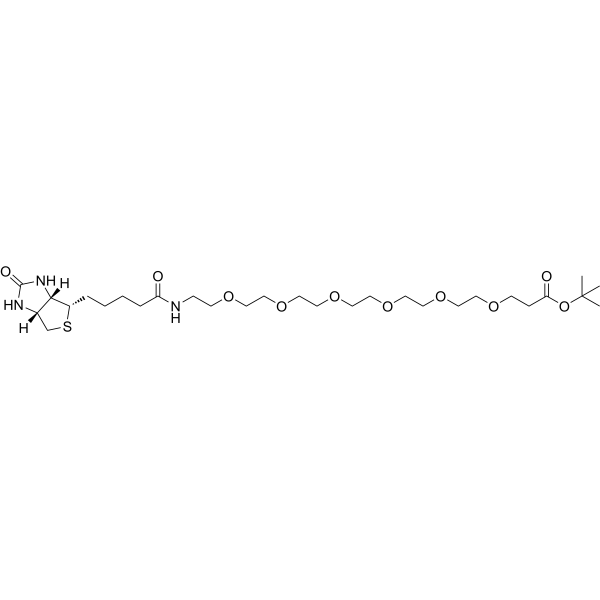 DescriptionBiotin-PEG6-Boc is a PEG-based PROTAC linker that can be used in the synthesis of PROTACs.(In Vitro):PROTACs contain two different ligands connected by a linker; one is a ligand for an E3 ubiquitin ligase and the other is for the target protein. PROTACs exploit the intracellular ubiquitin-proteasome system to selectively degrade target proteins.