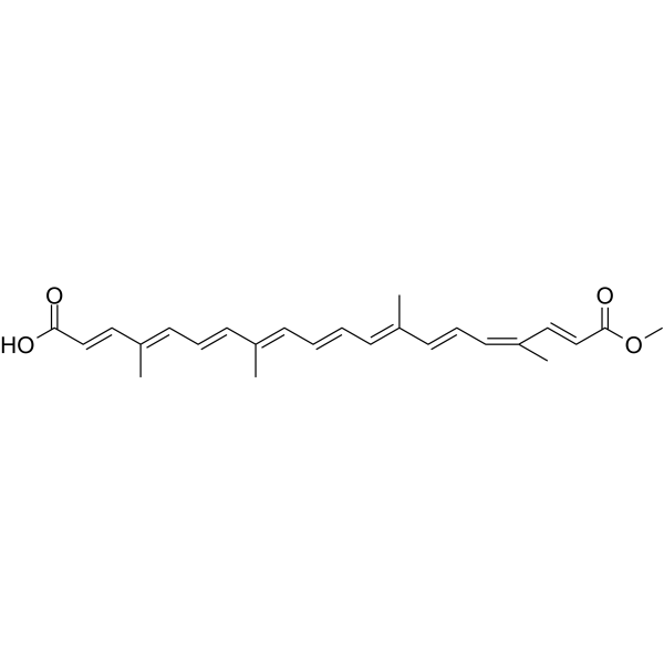 DescriptionBixin is isolated from the seeds of Bixa orellana and possesses anti-tumor, anti-inflammatory, and antioxidant activities. Bixin treatment ameliorated cardiac dysfunction through inhibiting fibrosis, inflammation, and ROS generation.