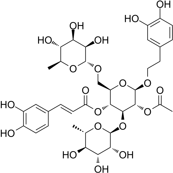 Brief DescriptionBrandioside shows strong antioxidant, and neuroprotective effects, it significantly attenuates glutamate-induced neurotoxicity at concentrations ranging from 0.1 to 10 microM; it exhibits significant inhibition of advanced glycation end product formation with the IC50 value of 4.6-25.7 μM.