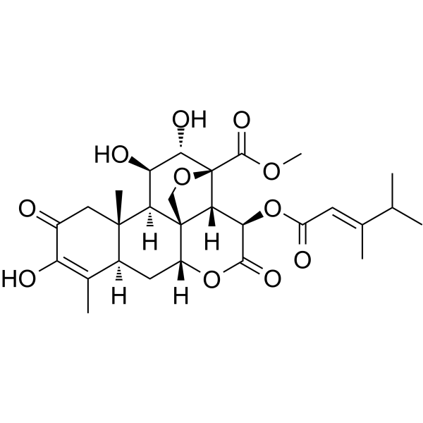 DescriptionBruceantin is a natural product isolated from Brucea antidysenterica. Bruceantin has antitumor activity against B16 melanoma, colon 38, and L1210 and P388 leukemia in mice.(In Vivo):Bruceantin induced regression in early as well as advanced tumors, and these significant antitumor responses were facilitated in the absence of overt toxicity.