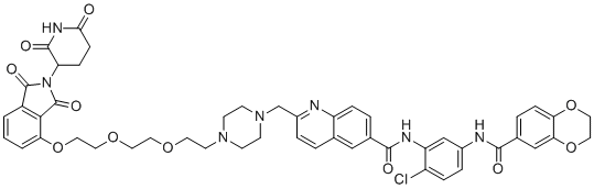 Chemical NameN-(2-Chloro-5-(2,3-dihydrobenzo[b][1,4]dioxine-6-carboxamido)phenyl)-2-((4-(2-(2-(2-((2-(2,6-dioxopiperidin-3-yl)-1,3-dioxoisoindolin-4-yl)oxy)ethoxy)ethoxy)ethyl)piperazin-1-yl)methyl)quinoline-6-carboxamide