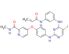 SMILESc1c(ccc(c1)Oc1ccnc(c1)C(=O)NC)Nc1nc(c(cn1)F)Nc1cccc(c1)NC(=O)C=C