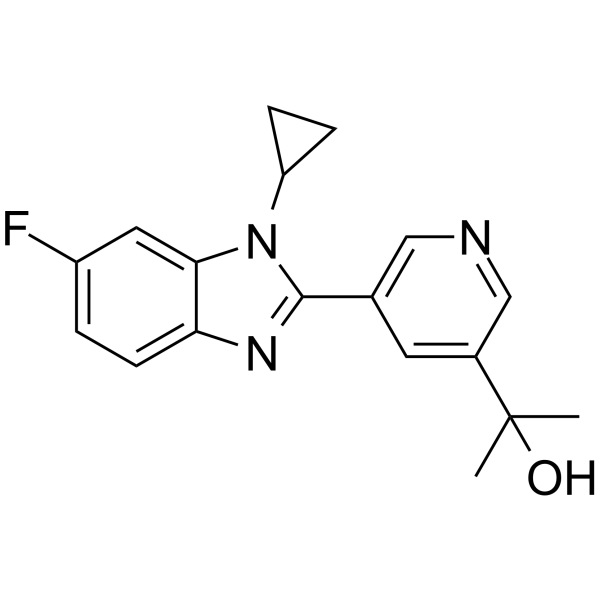 SMILESCC(C)(O)c1cncc(c1)-c1nc2ccc(F)cc2n1C1CC1