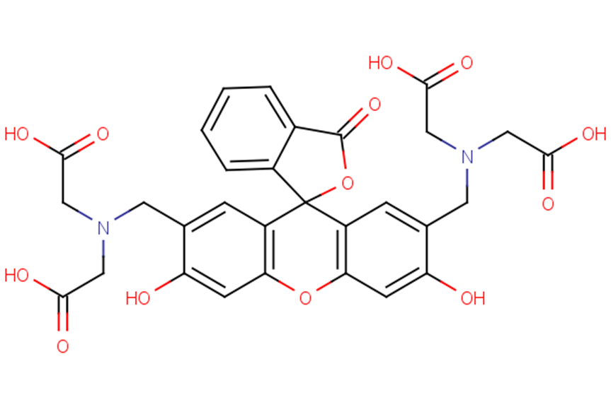 Brief DescriptionCalcein is a fluorescent dye and self-quenching probe that used as an indicator of lipid vesicle leakage,and a complexometric indicator for titration of calcium ions with EDTA, and for fluorometric determination of calcium.