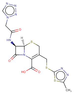SMILES[H][C@]12SCC(CSc3nnc(C)s3)=C(N1C(=O)[C@H]2NC(=O)Cn1cnnn1)C(O)=O