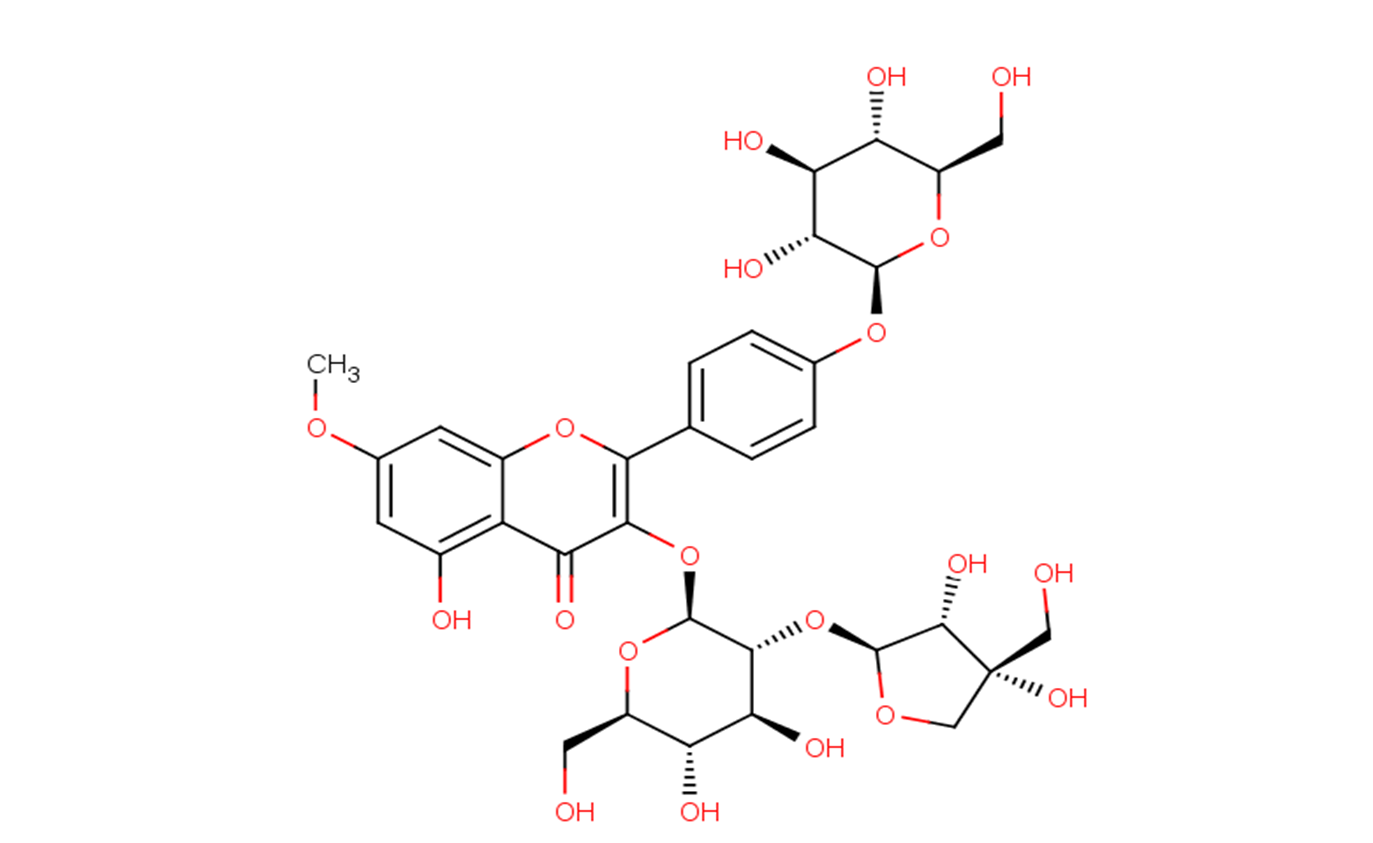 SMILESCOC1=CC(=C2C(=C1)OC(=C(C2=O)O[C@H]3[C@@H]([C@H]([C@@H]([C@H](O3)CO)O)O)O[C@H]4[C@@H]([C@](CO4)(CO)O)O)C5=CC=C(C=C5)O[C@H]6[C@@H]([C@H]([C@@H]([C@H](O6)CO)O)O)O)O