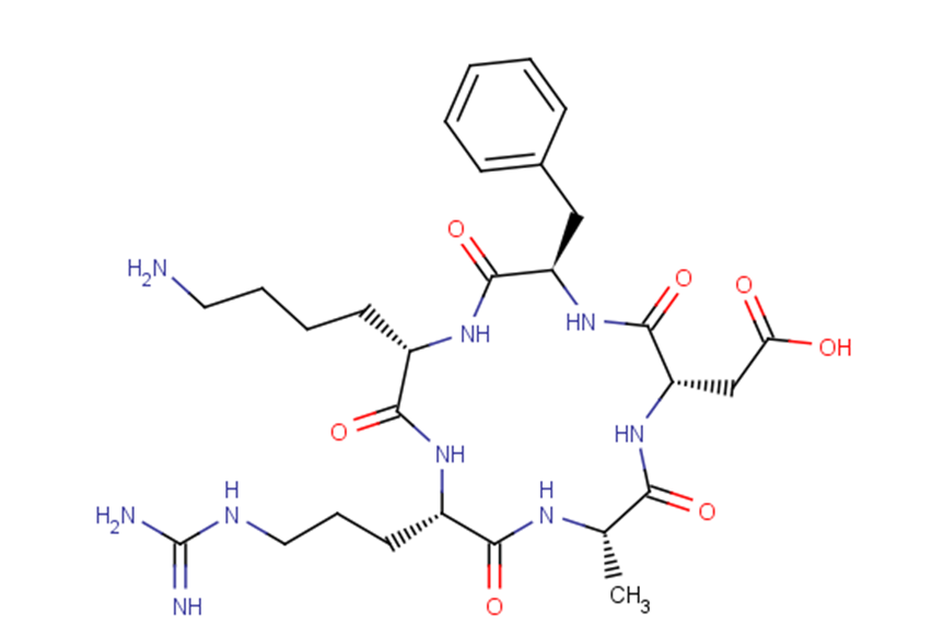 Brief DescriptionCyclo(RADfK) is a selective α(v)β(3) integrin ligand that has been extensively used for research, therapy, and diagnosis of neoangiogenesis.Cyclo(RADfK) is a negative control for the cyclo (-RGDfK-), the RGD peptide.