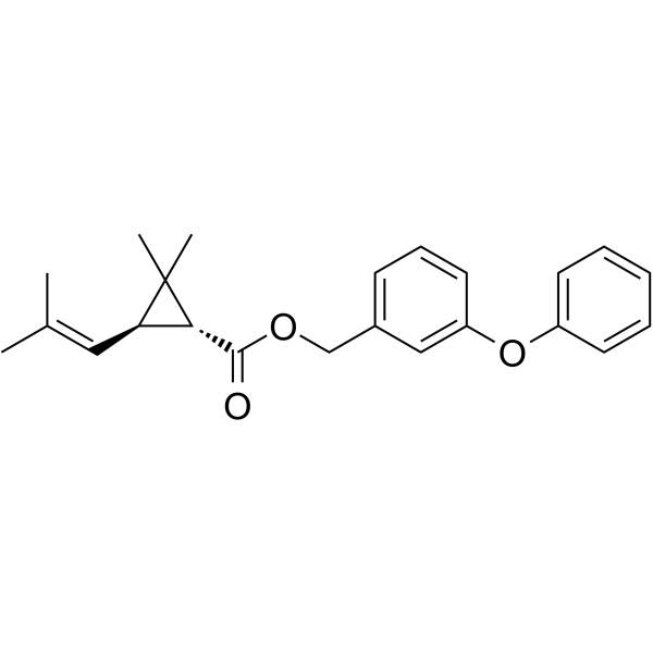 In VivoD-Phenothrin ((-)-trans-Phenothrin; 25-200 mg/kg; IP; 14 consecutive days) significantly, dose-dependently increases oxidative DNA damage in both organs of animals. D-Phenothrin (100, 300 or 1000 mg/kg/day; p.o.; 3 days) exhibits no potential to cause adverse estrogenic or (anti-)androgenic effects. Animal Model:Male Wistar albino rats (6-week-old, 150-200 g)Dosage:25, 50, 100, 200 mg/kg Administration:IP; 14 consecutive days Result:Had a statistically significant, dose-dependent increase in oxidative DNA damage in both organs of animals.