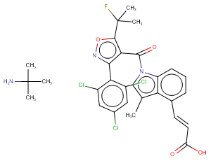 SMILESCC(C)(C)N.Cc1cn(C(=O)c2c(-c3c(Cl)cc(Cl)cc3Cl)noc2C(C)(C)F)c2cccc(/C=C/C(=O)O)c12