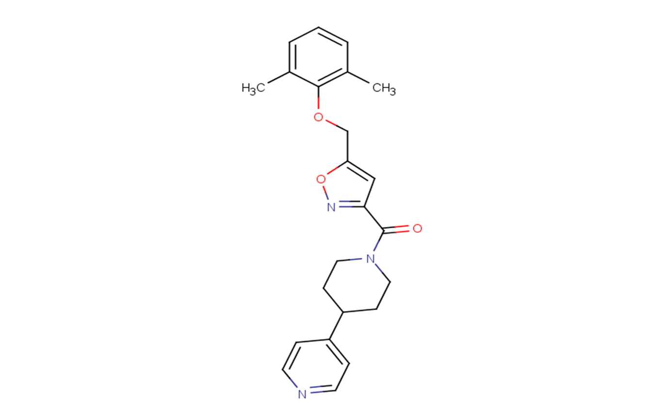 SMILESCC1=C(C(=CC=C1)C)OCC2=CC(=NO2)C(=O)N3CCC(CC3)C4=CC=NC=C4