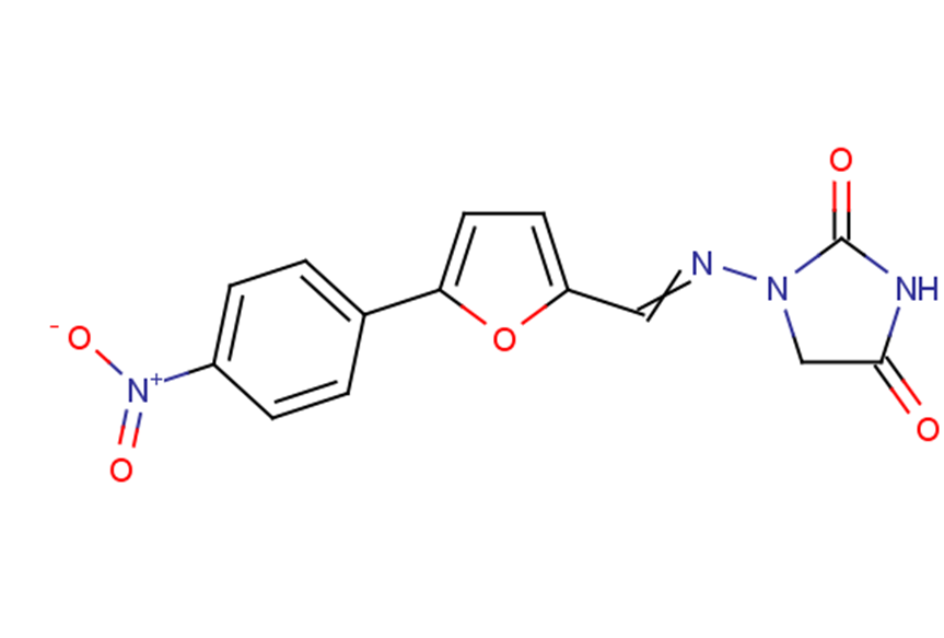 SMILES[O-][N+](=O)c1ccc(cc1)-c1ccc(C=NN2CC(=O)NC2=O)o1