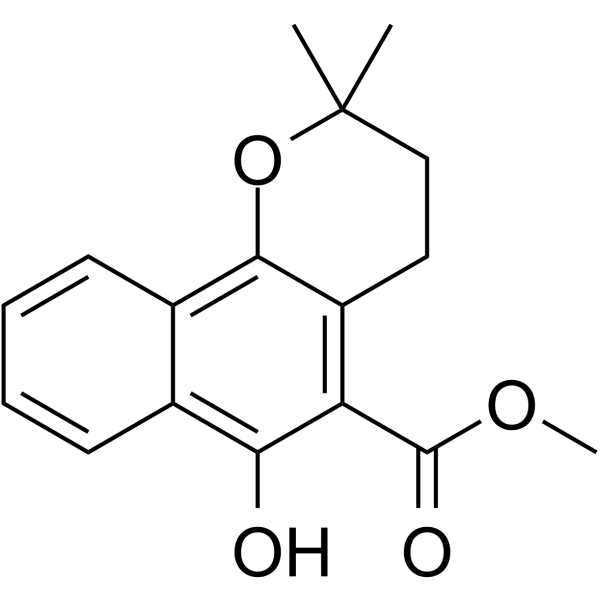 Brief DescriptionDihydromollugin is a naphthol ester found in Rubia cordifolia that may have anti-tumour, virus-inhibiting and other activities.