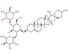 SMILESC[C@H]1CC[C@]2([C@H]([C@H]3[C@@H](O2)C[C@@H]2[C@@]3(CC[C@H]3[C@H]2CC=C2[C@@]3(CC[C@@H](C2)O[C@H]2[C@@H]([C@H]([C@@H]([C@H](O2)CO)O[C@H]2[C@@H]([C@@H]([C@H]([C@@H](O2)C)O)O)O)O)O[C@H]2[C@@H]([C@@H]([C@H]([C@@H](O2)C)O)O)O)C)C)C)OC1