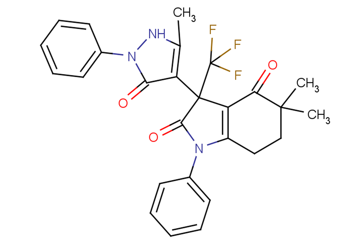 SMILESO=C1N(C2=CC=CC=C2)C3=C(C(C(C)(C)CC3)=O)C1(C4=C(C)NN(C5=CC=CC=C5)C4=O)C(F)(F)F