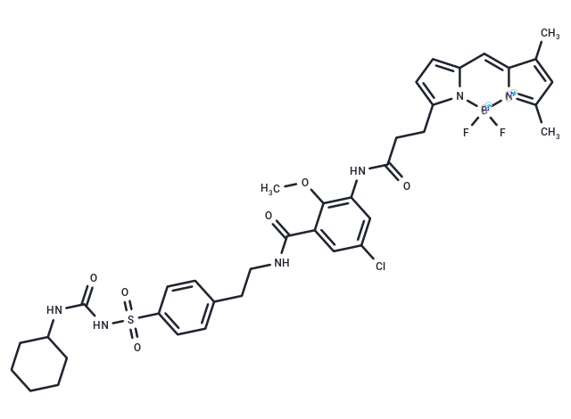 SMILESCOc1c(NC(=O)CCc2ccc3C=C4C(C)=CC(C)=[N+]4[B-](F)(F)n23)cc(Cl)cc1C(=O)NCCc1ccc(cc1)S(=O)(=O)NC(=O)NC1CCCCC1