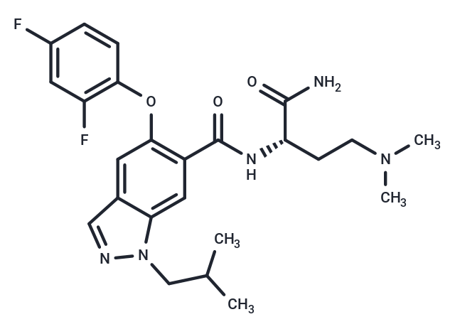 SMILESC(C(C)C)N1C=2C(=CC(OC3=C(F)C=C(F)C=C3)=C(C(N[C@@H](CCN(C)C)C(N)=O)=O)C2)C=N1