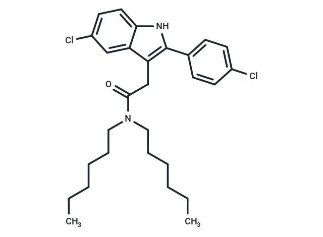 SMILESC(C(N(CCCCCC)CCCCCC)=O)C1=C(NC=2C1=CC(Cl)=CC2)C3=CC=C(Cl)C=C3
